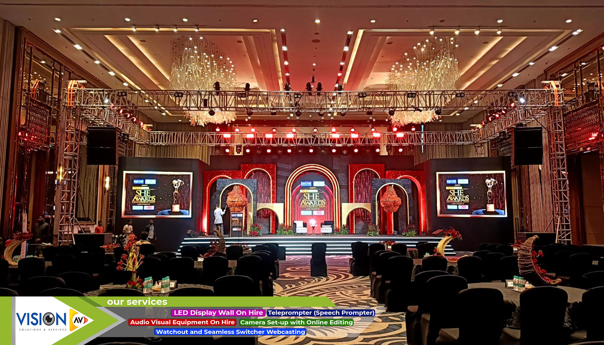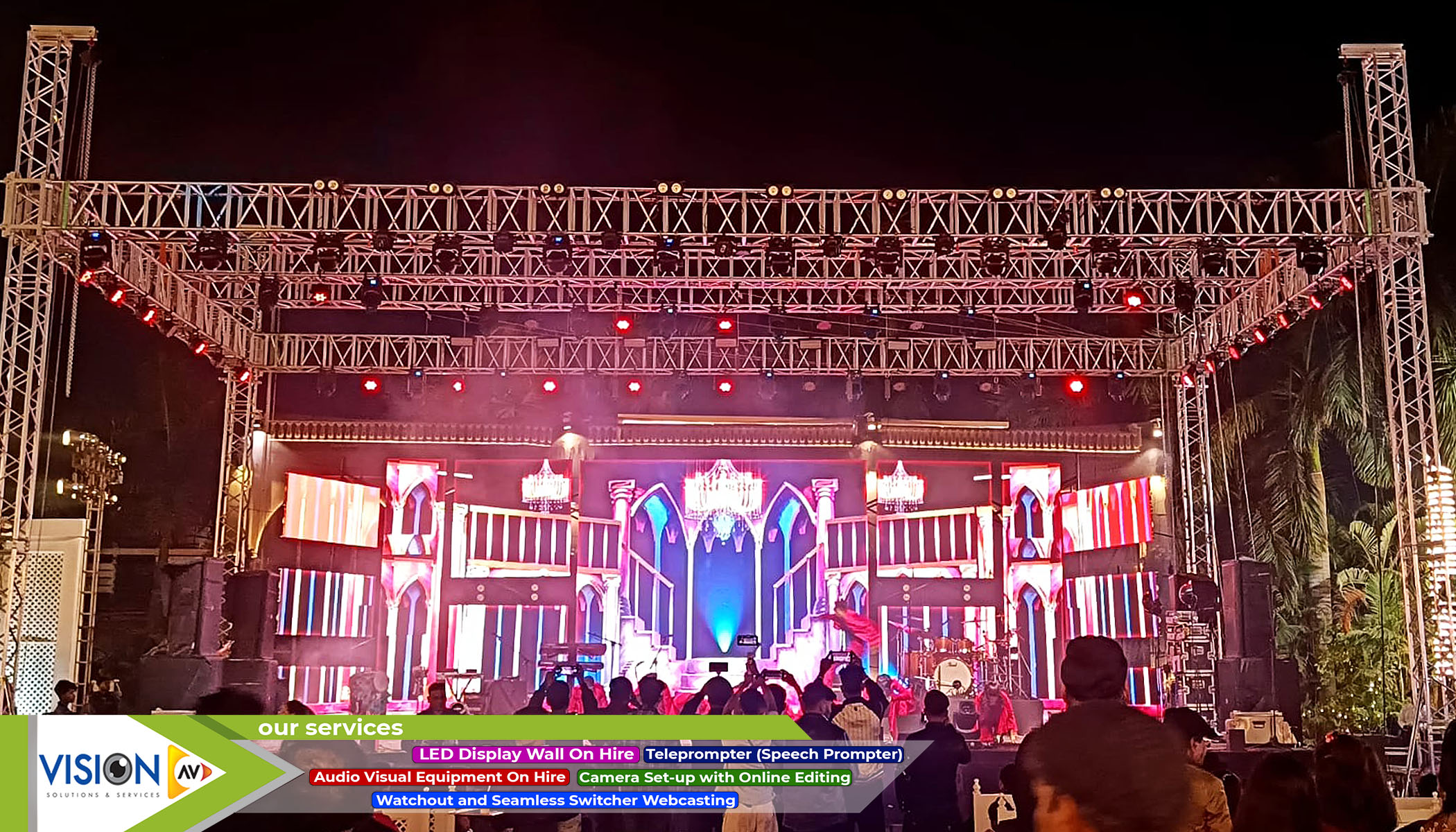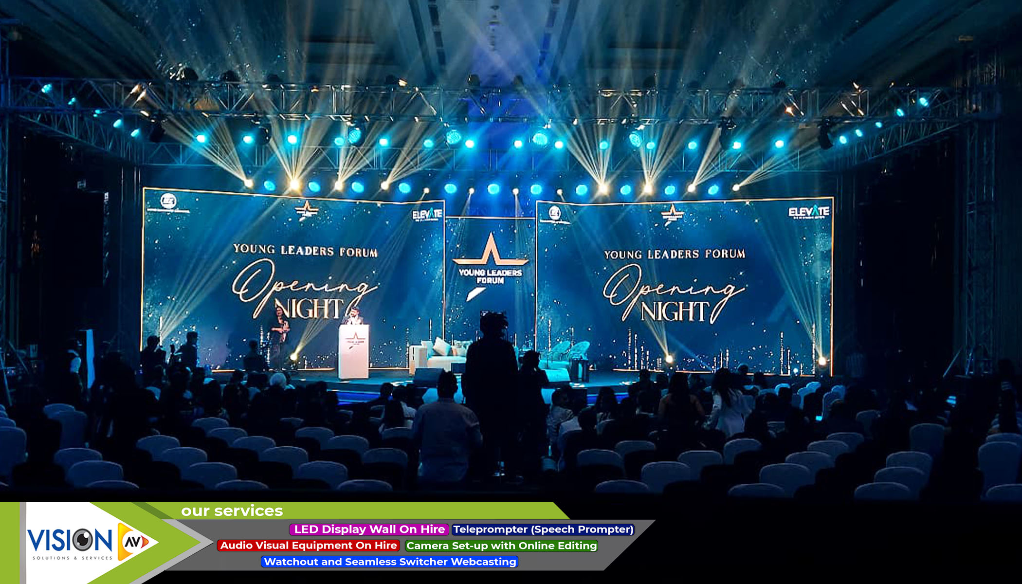 We, at Vision AV, have delineated a span of services for our clients. We offer a variety of services and equipment for every kind of entertainment events from film or wedding shoot to any inauguration event. Here are some of the creative solutions that we provide to our potential customers.