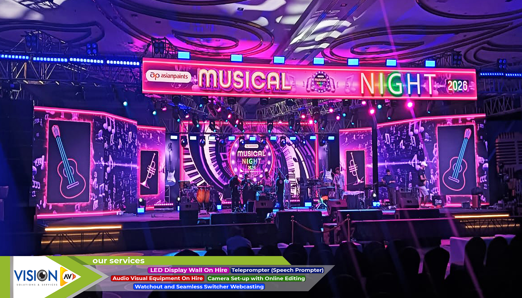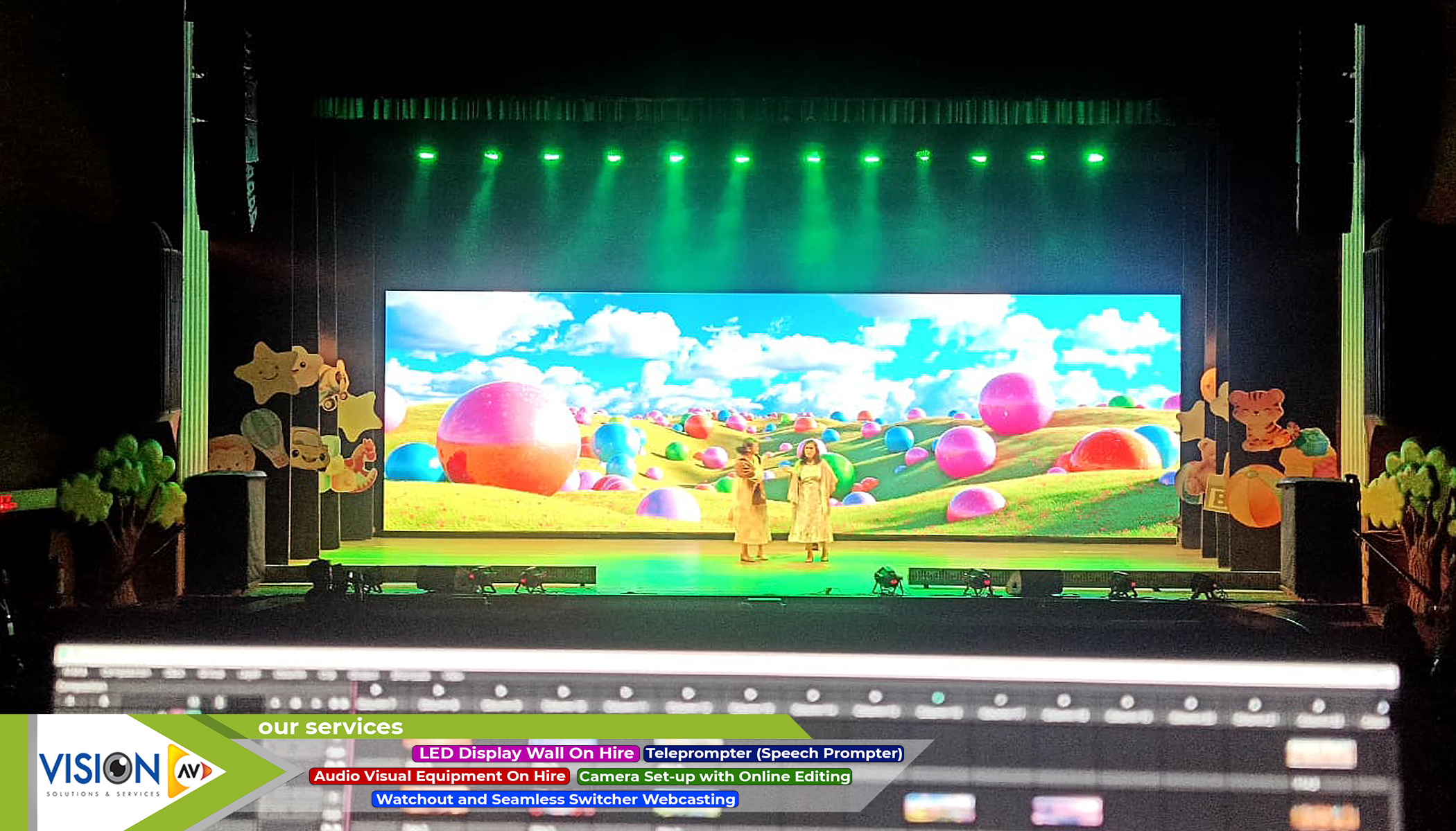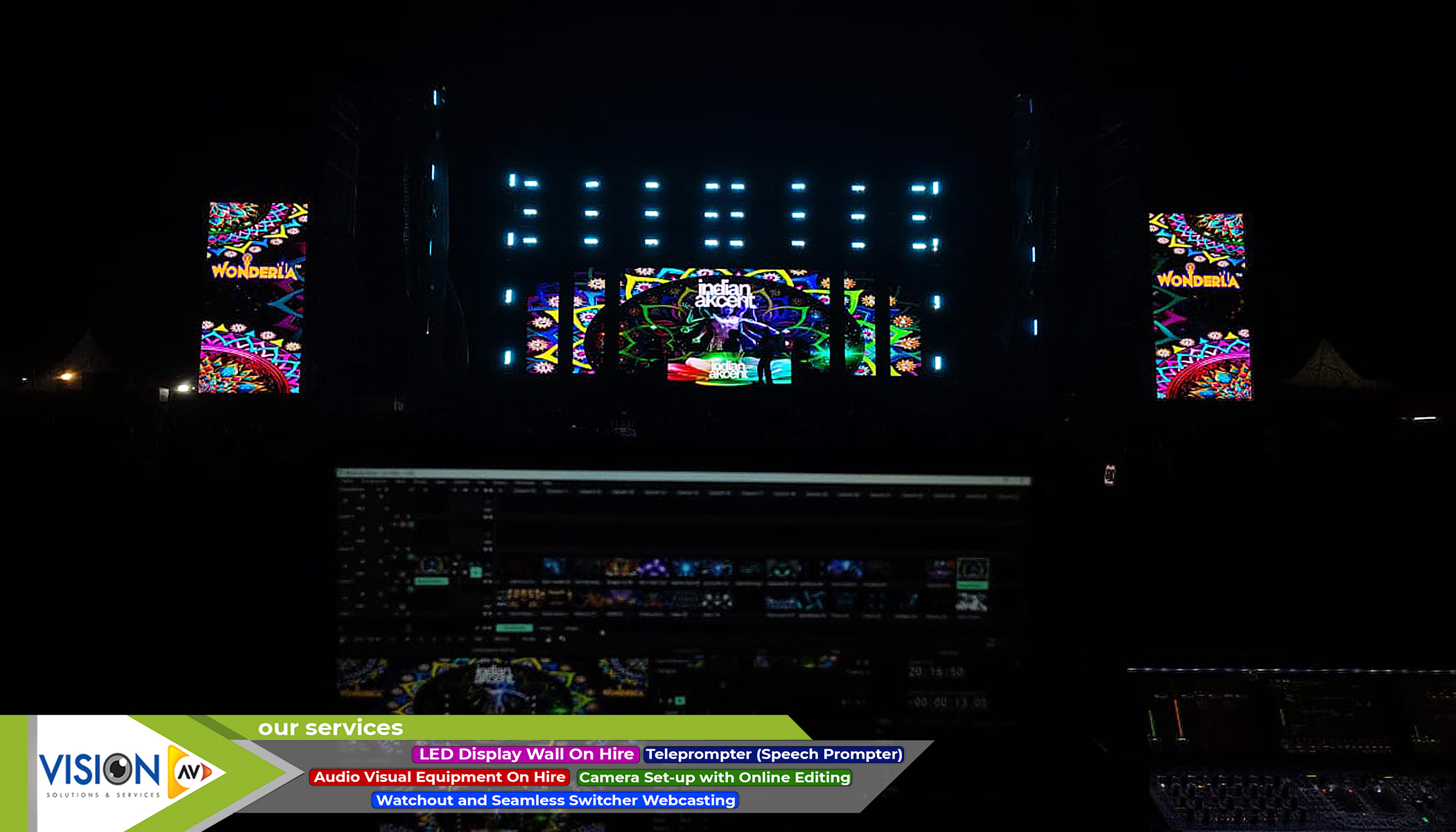 We, at Vision AV, have delineated a span of services for our clients. We offer a variety of services and equipment for every kind of entertainment events from film or wedding shoot to any inauguration event. Here are some of the creative solutions that we provide to our potential customers.